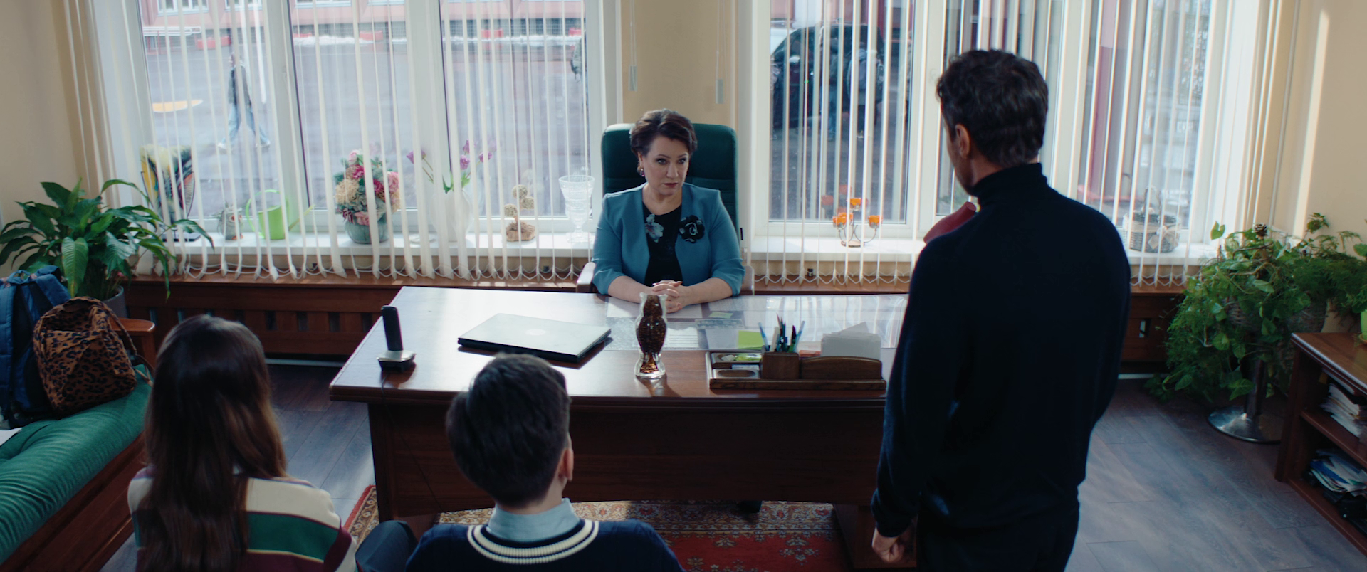 просыпается в окружении жены, сына и дочери, которые заявляют, что они были у него